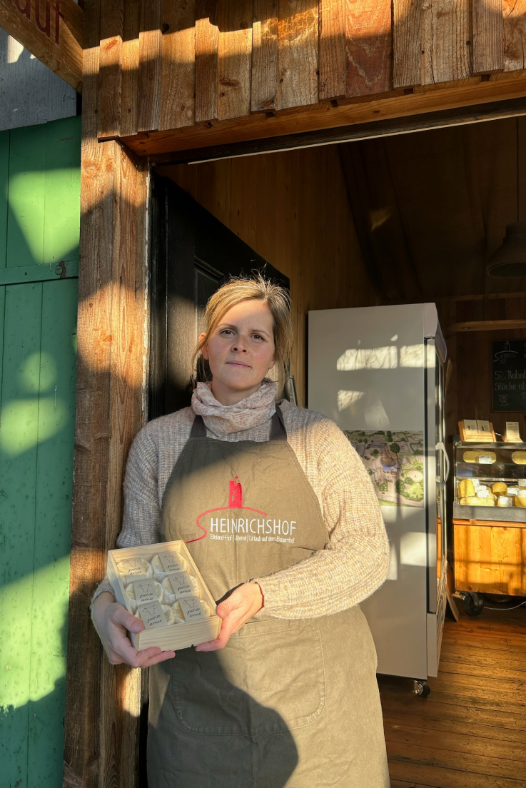 Hanna ist Fachagrarwirtin für Handwerkliche Milchverarbeitung und leitet seit 2020 die Hofkäserei, den Hofverkauf und kümmert sich um die Öffentlichkeitsarbeit und Veranstaltungen am Heinrichshof. Mit ihrem Mann Max hat sie zwei Kinder.
