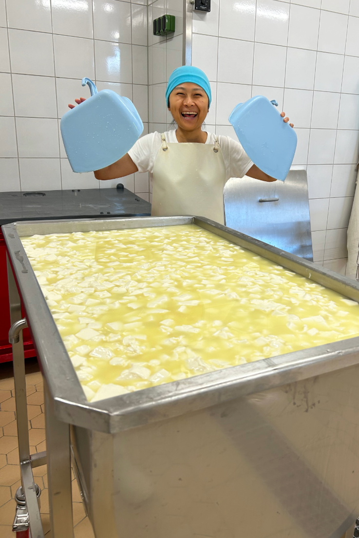 Hanae ist seit Oktober 2025 teil des Hofkäserei-Teams. Sie ist unsere neue Auszubildende zur Fachagrarwirtin für handwerkliche Milchverarbeitung. Um das Käsehandewerk zu erlernen ist sie extra aus Japan nach Deutschland gezogen.